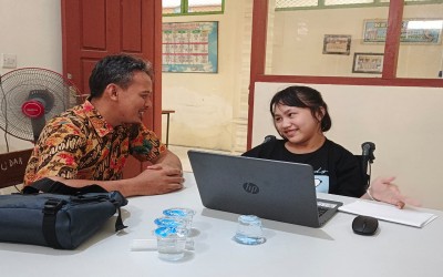Implementasi sekolah inklusi dengan praktik membaca huruf braille oleh siswa ABK Tunanetra dengan dipandu oleh tutor khusus penanganan ABK.